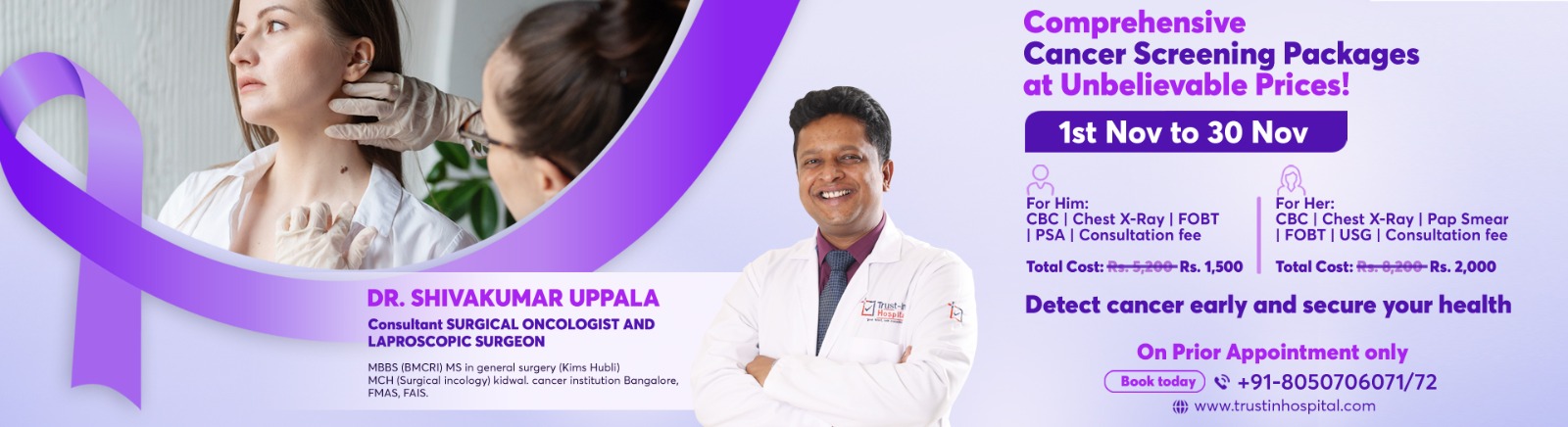 Cancer can be a formidable adversary, affecting not just the body but the mind and finances as well. At JN Biradar Hospital, we're committed to offering personalised, affordable, and evidence-based cancer care. Our multidisciplinary team of oncologists, nurses, and paramedical staff provides holistic support for patients and their families, from diagnosis to palliative care.